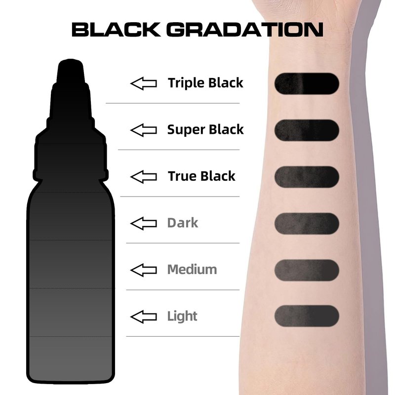 - đź–¤Features: Easy to work with and super opaque, allowing for strong, fast-moving saturation into the skin. Non-irritating and can be used for all tattoo styles.