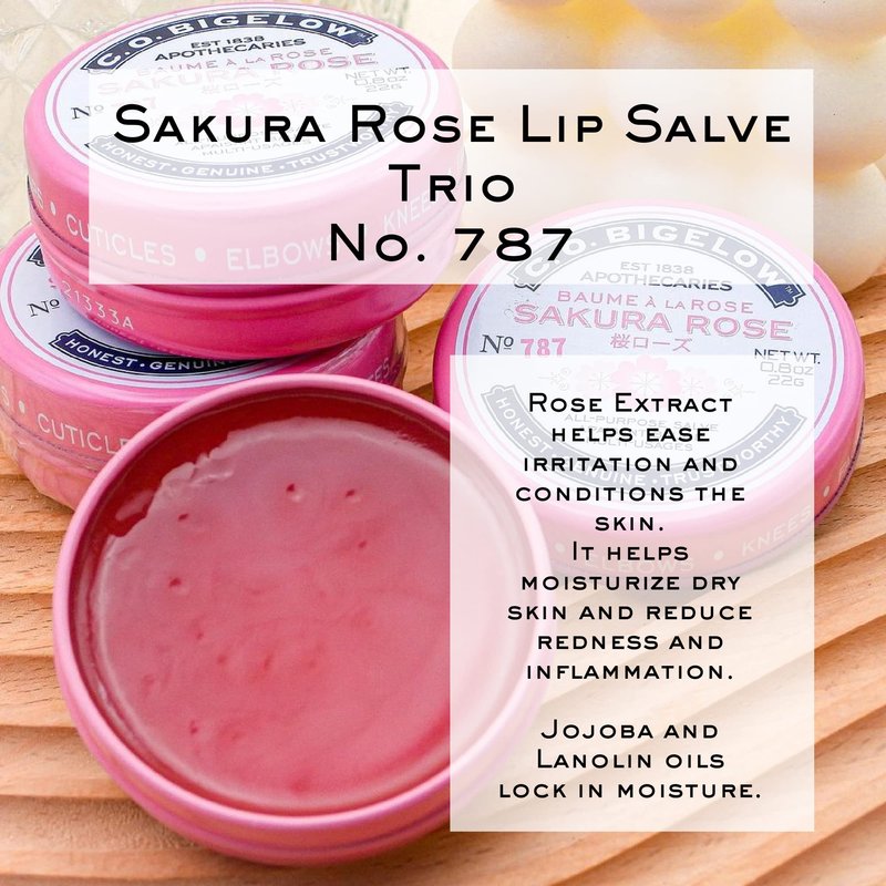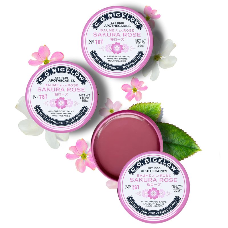 C.O. Bigelow All Purpose Salve Lip Balm Tins, Sakura Rose Salve Pack of 3 for Chapped Lips & Dry Skin - Moisturizing Lip, Cuticle and Skin Salves, 0.8 oz each