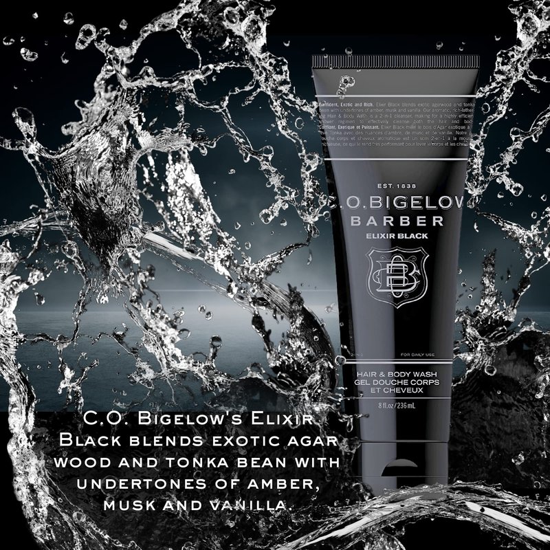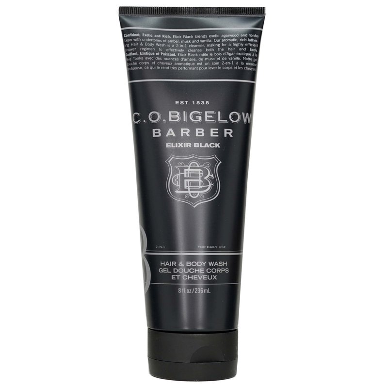 C.O. Bigelow Men's Hair and Body Wash, Elixir Black, No. 1605, 8 fl oz, Mens Body Wash & Shampoo, Musk & Vanilla Moisturizing Mens Shampoo & Body Cleanser