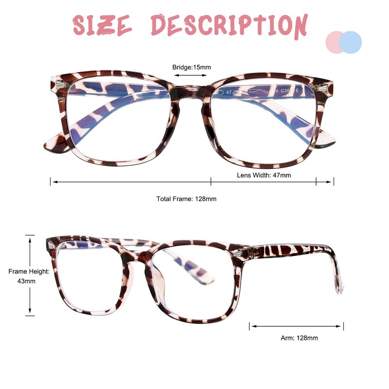 - Product Dimension: Lens width: 47 mm (1.85"), frame height: 43 mm (1.69"), nose bridge: 15 mm (0.59"), frame width: 128 mm (5.04"), temple length: 128 mm (5.04"), net weight: 17.4 g