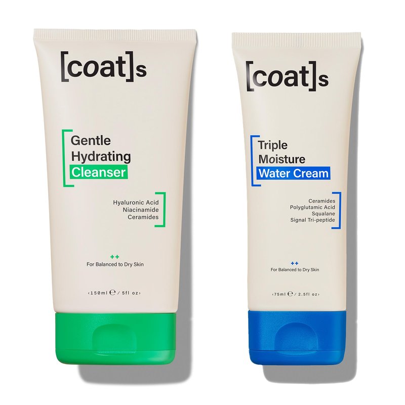 Meet Coats Daily Duo 2-Step Bundle – Your new go-to Cleanser and Moisturizer, designed for younger skin. For all-day hydration and a healthy, glowing, clear complexion: a non-foaming facial cleanser gel and a deeply hydrating but super lightweight water-based moisturizer. Carefully formulated with active ingredients such as skin-fortifying ceramides and hydration-boosting Hyaluronic Acid, this duo is clinically proven to protect your skin’s natural barrier and help prevent future breakouts. Coats skincare sets and kits are alcohol-free, paraben free and fragrance-free, and approved by the Skin Health Alliance.