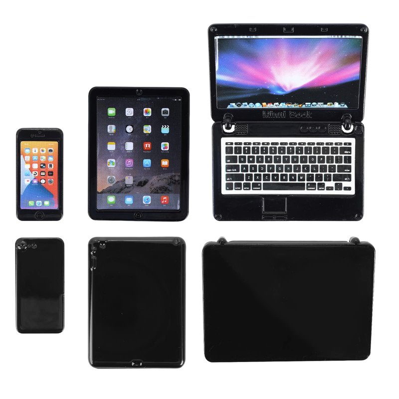 - 【Package includes】:Miniature dollhouse accessories includes:1Pcs Mini Tablet,1Pcs Mini Cell Phone,1Pcs Miniatures Metal Laptop (Mini laptop can stand open).