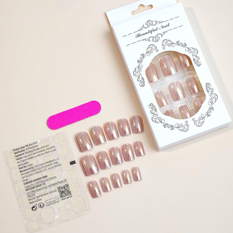 • 【Package Includes】The package contains 24 pieces of short press on nails square of different sizes, 1 sheet of 24 pieces jelly glue, 1 piece of mini nail file, 1 piece of wooden stick.