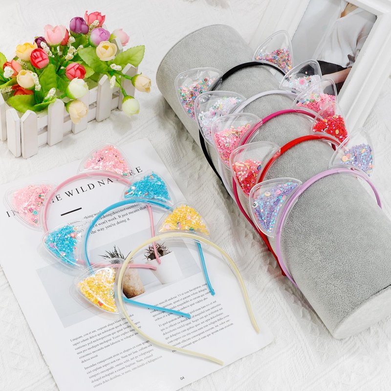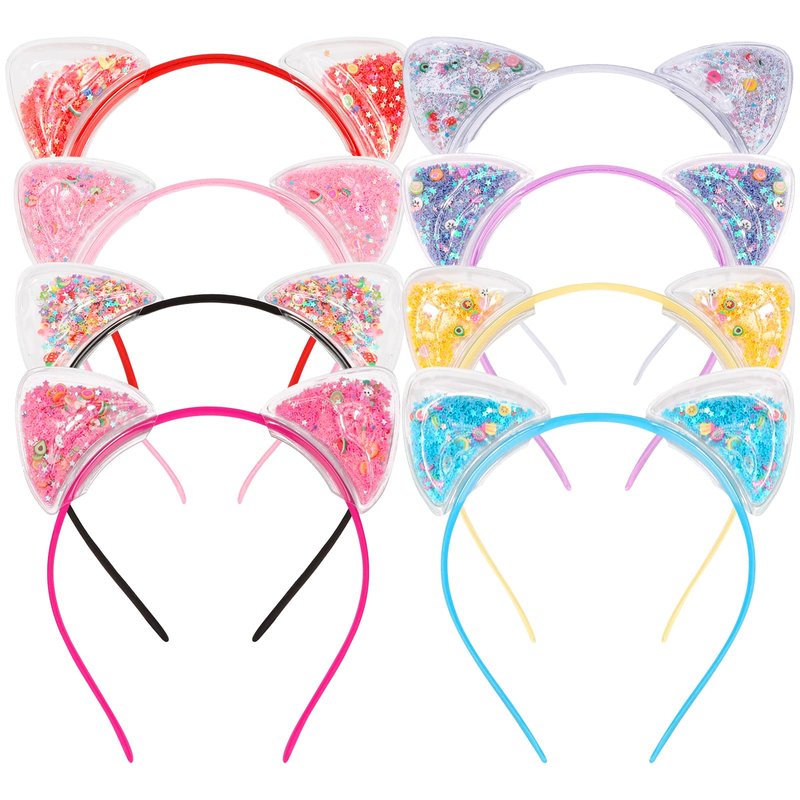 COCIDE 8Pcs Cat Ears Headbands Plastic Taylor Party Decorations Transparent Headbands for Girls Gabby Party Favors Kitty Birthday Supplies for Women Cute Halloween Hair Accessories Costume
