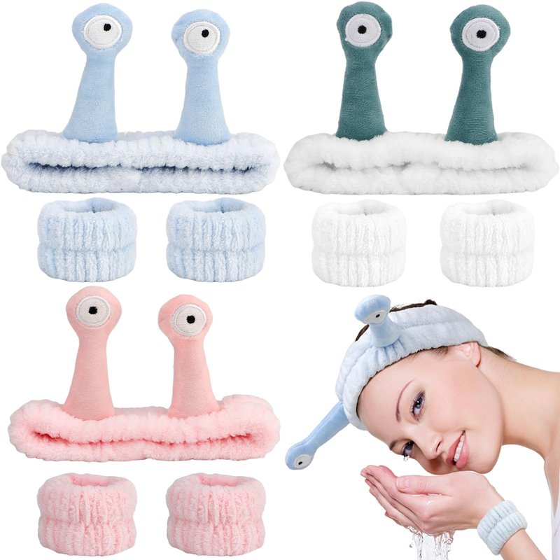 - 【9 PCS Set】Package includes 3 snail hair bands and 6 face wash bracelets. Snail shape design hair bands are cute and practical, each headband comes with two bracelets, when you wash your face put on the hair band and then put on the bracelets, your hair and arms won't be wet with water anymore.