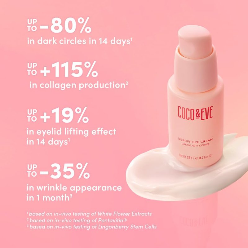 Coco & Eve Depuff Eye Cream. Under Eye Cream for Puffiness, Dark Circles & Wrinkles. Firms, brighten, revitalize, and smooth out fine lines. (0.71 fl oz)