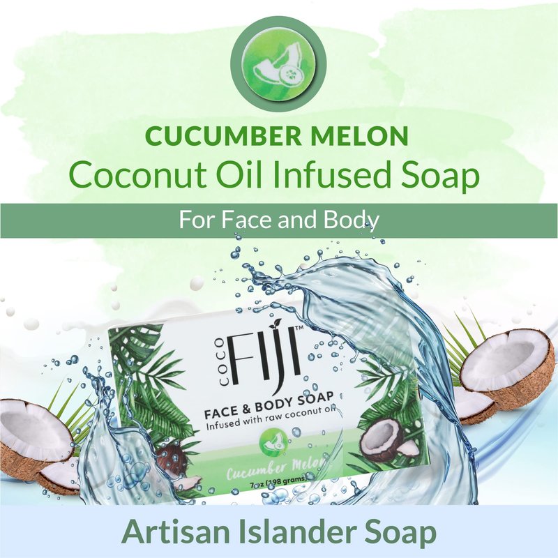 - Plant Based - Moisturizing Soap : Coco Fiji Soap Bar is infused with raw cold pressed organic coconut oil and Cucumber Melon oils. This soap contains the goodness of raw cold pressed coconut organic coconut oil that gently cleanses leaviing your skin irresitibly smooth and soft as a baby's bottom. Our Coco Fiji Plant-Based Soap Bar is rich in lather and beautifully scented, leaving skin nourished and illuminated.