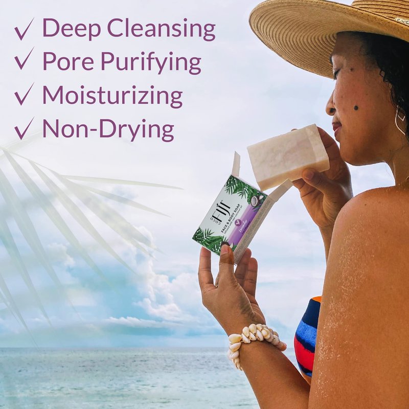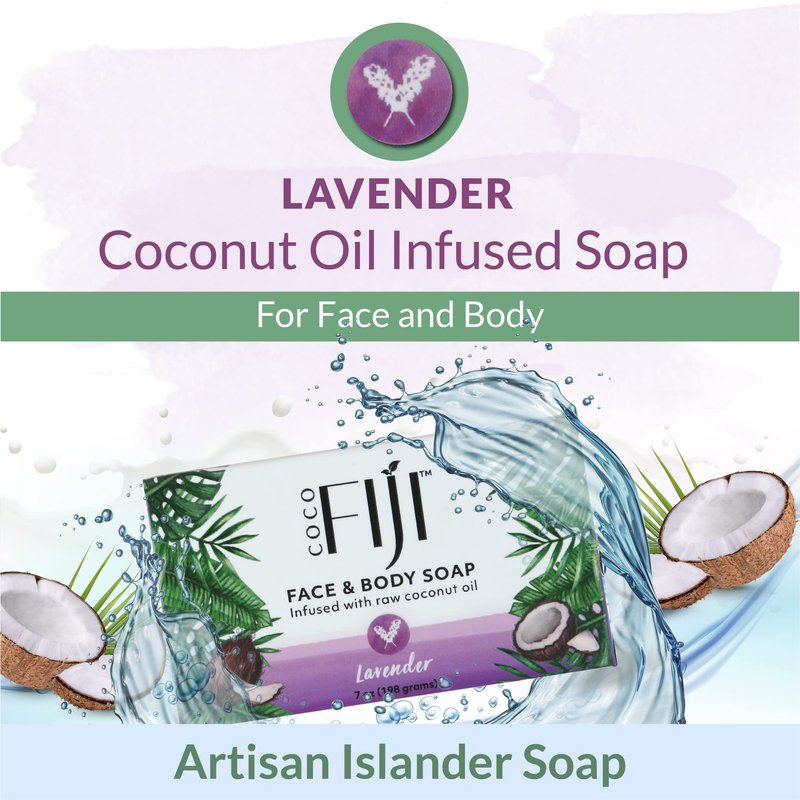 - Plant Based - Moisturizing Soap : Coco Fiji Soap Bar is infused with raw cold pressed organic coconut oil and Lavender oils. This soap contains the goodness of raw cold pressed coconut organic coconut oil that gently cleanses leaviing your skin irresitibly smooth and soft as a baby's bottom. Our Coco Fiji Plant-Based Soap Bar is rich in lather and beautifully scented, leaving skin nourished and illuminated.