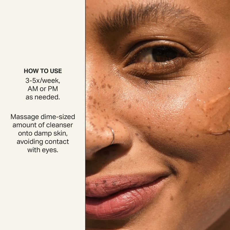 - For optimal use, massage face cleanser onto damp skin, avoiding contact with eyes. Rinse off with water and pat dry. This gentle face cleanser can be used both AM and PM 3-5 times a week.