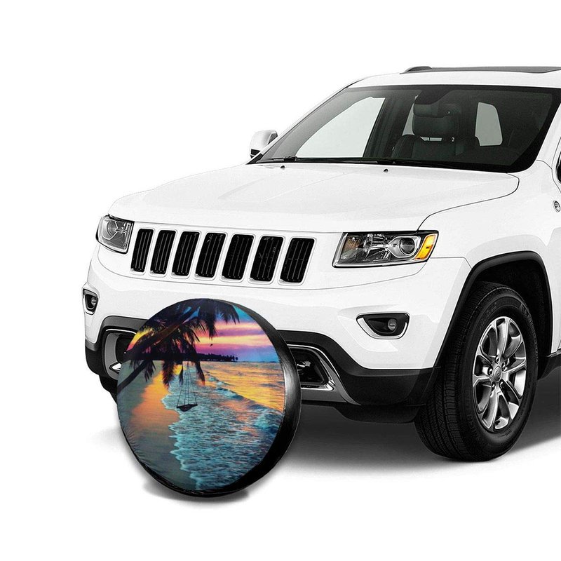 Coconut Beach Sunset Hammock Spare Tire Cover Waterproof UV Sun Wheel Covers Fit for Trailer, RV, SUV 15 Inch