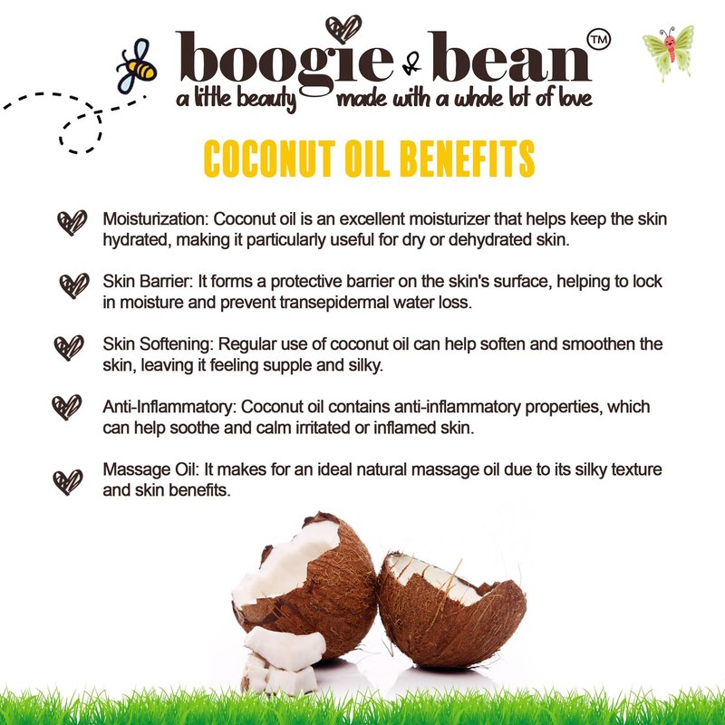 - Boogie and Bean Simply Unscented Coconut Oil for Baby and Kidcare is made with premium quality, food grade and NON GMO coconut oil.