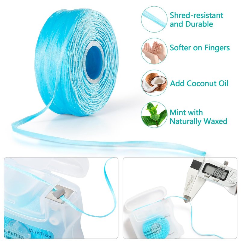 - Deep Clean - Infused with naturally cleansing coconut oil, mood-boosting aromas.Its unique textured weave gives it's easier to removes plaque and debris between your teeth than traditional dental floss and better gentle on gums.