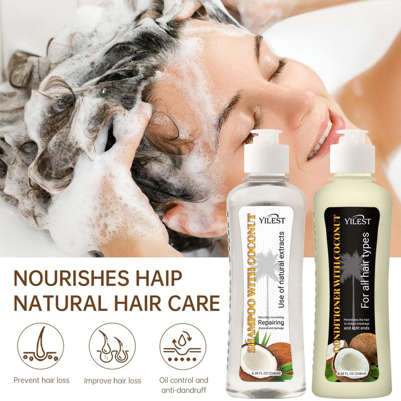 Coconut Oil Shampoo and Conditioner Set for Men & Women, Anti Hair Loss Set Thickening for Hair Regrowth, Anti Thinning For Hair Care, Anti Dandruff Treatment (Coconut)
