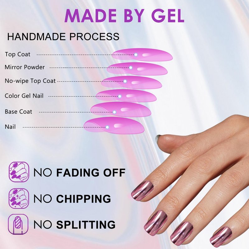 - ❤️【Warm Tips】If you receive any problems with the chrome glue on nails short,please reach out to our seller first,we are dedicated to serving you.Apply a layer of clear nail polish on top and cure it with a UV light,this will make the metallic finish even more Sturdy.