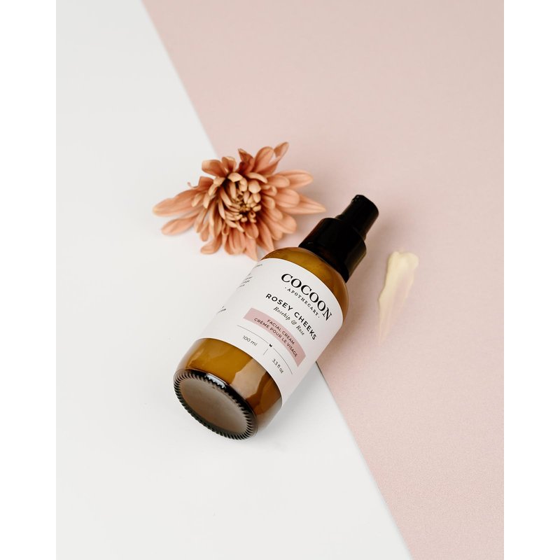 COCOON APOTHECARY Rosey Cheeks Facial Cream, Ecocert Cosmos Natural, Maintain Hydration, Sensitive/Dry/Normal Skin, Matte Finish, Rosehip Oil, Avocado Oil, Shea Butter, 3.3 fl oz