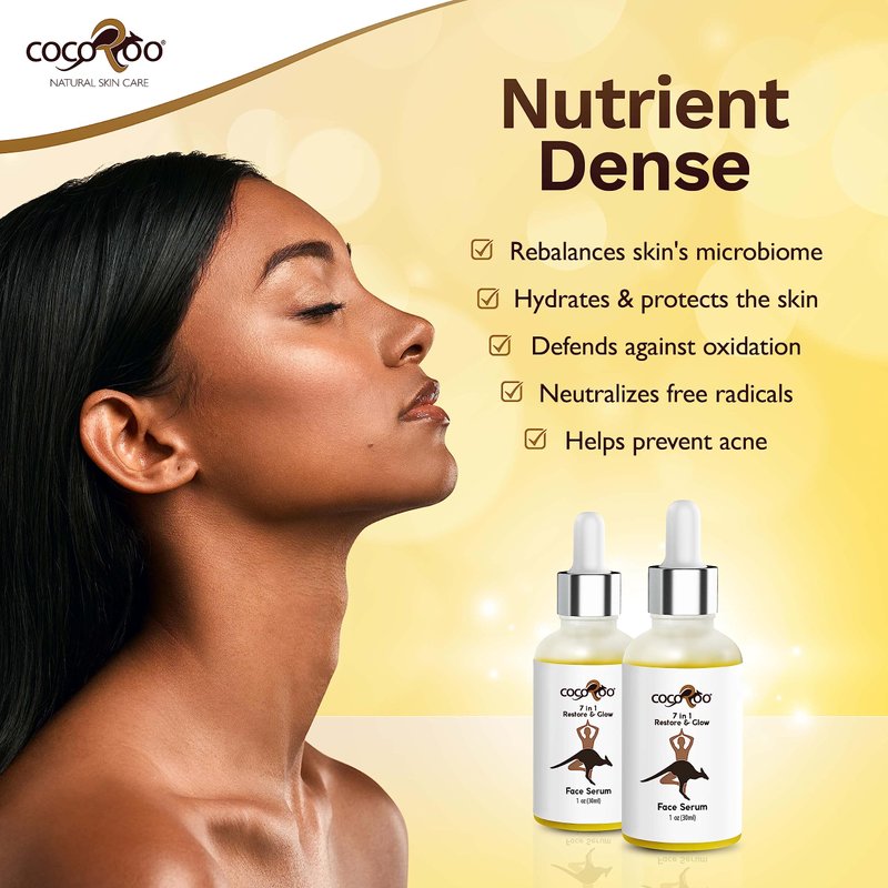 CocoRoo’s concentrated 7 in 1 Face Serum for women is designed to rebalance your skin’s microbiome and leave your skin looking brighter, tighter, and more supple.