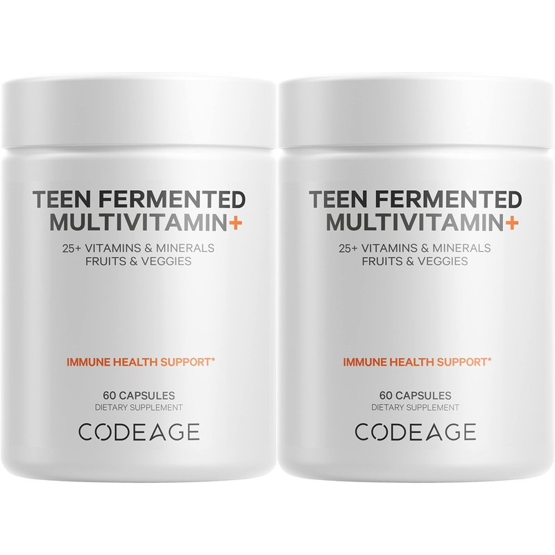 Codeage Teen’s Daily Multivitamin Supplement, 25+ Vitamins & Minerals for Teenage Boys & Girls, Organic Whole Foods Vitamins for Teenagers, Vitamin A, B Vitamins, Vitamin C, D, E, K, Omega-3, 2 Pack