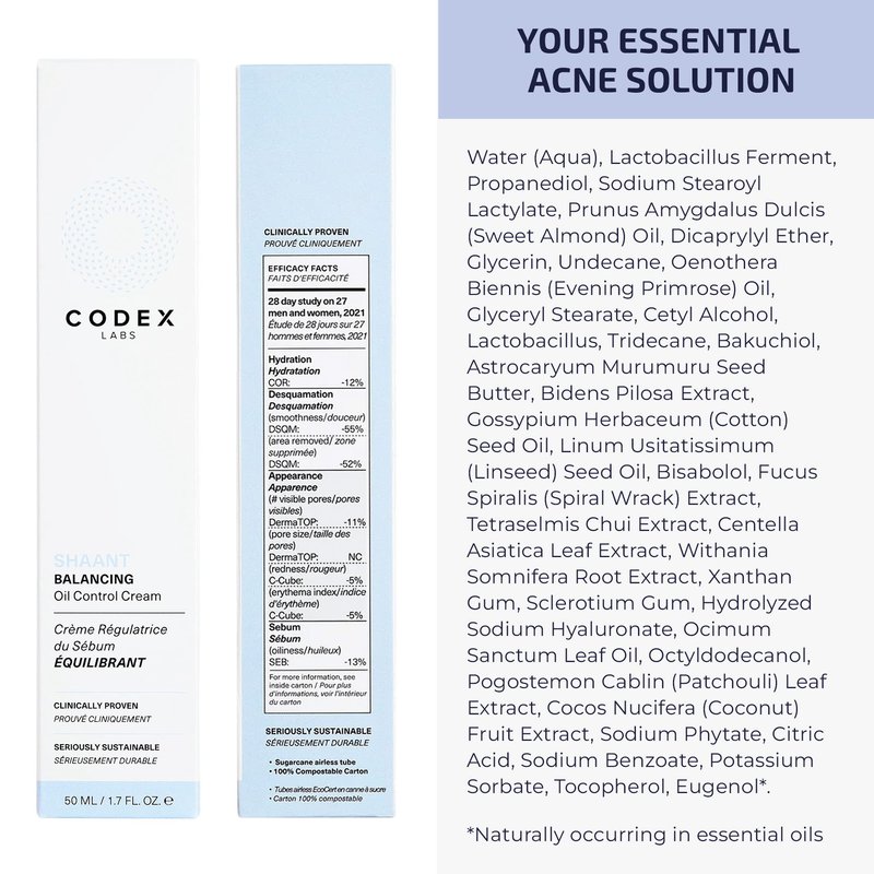 - Proven Mattifying & Smoothing Face Cream: Reduce oiliness, clear pores, and improve skin turnover with Codex Labs Shaant Balancing Oil Control Cream. Meticulously formulated using ingredients grounded in science and sourced from Ayurvedic medicine. It’s your clinically proven skincare solution for oily skin that’s prone to breakouts.