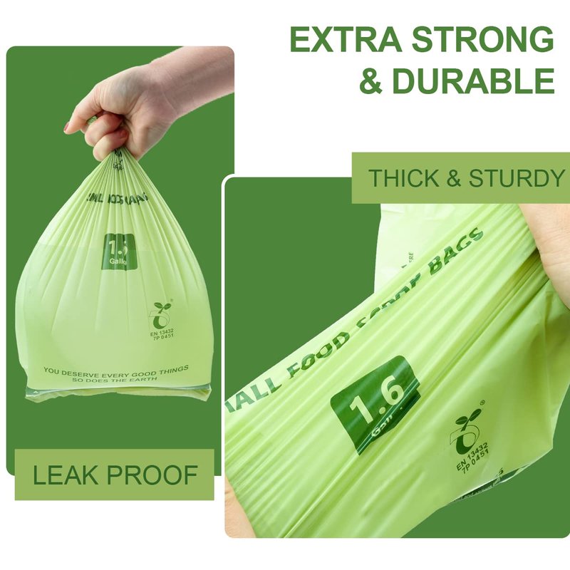 Codirom 100% Compostable Trash Bags,1.6 Gallon, 6 Liter, Samll Kitchen Food Scrap Waste Bags for Countertop Bin, Certified by BPI and EN13432 Meeting ASTM D6400 Standards