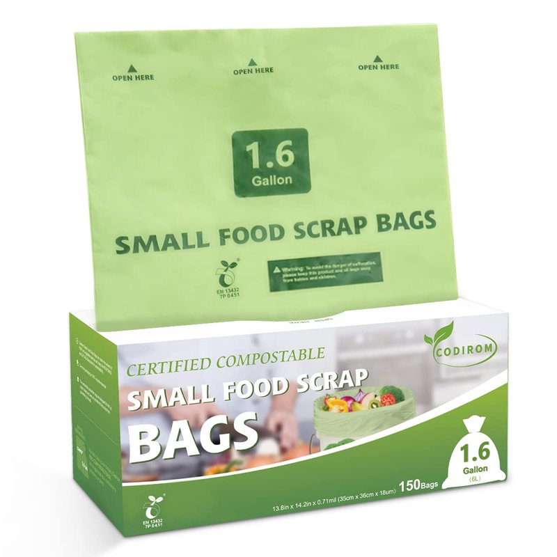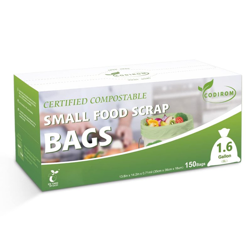 Codirom 100% Compostable Trash Bags, 1.6 Gallon, 6 Liter, 150 Count Samll Kitchen Food Scrap Waste Bags for Countertop Bin with Europe EN13432 Certified
