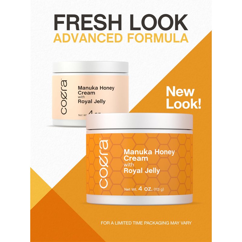 Coera Manuka Honey Cream | with Royal Jelly | 4oz | Hydrating Moisturizer for Face & Skin | Free of Parabens, SLS, & Fragrances | Packaging May Vary