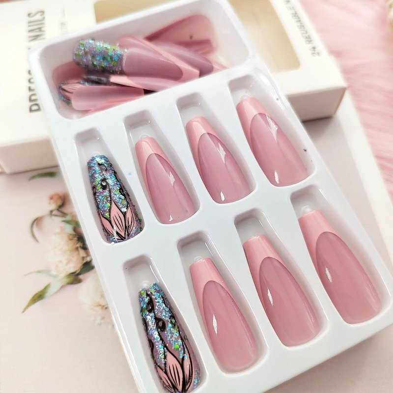 - 💗Lasting Effect: You can use the nail glue sticker we gave you (using nail glue sticker, nails can be reused). However, nail glue stickers are not as good as liquid nail glue. If you want the nails to last longer, you can use liquid nail glue for a lasting effect of 1-2 weeks.