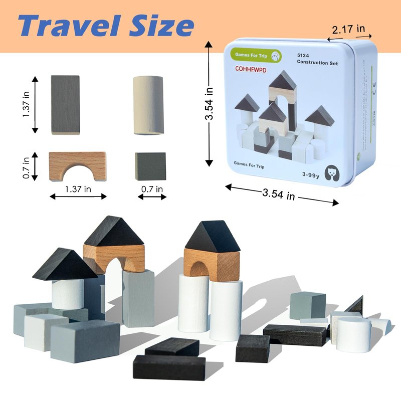 - TRAVEL GAME: 24 wood cubes in a durable tin case (3.54x3.54x2.17 inches), easy to carry when travel and great for on-the-go fun