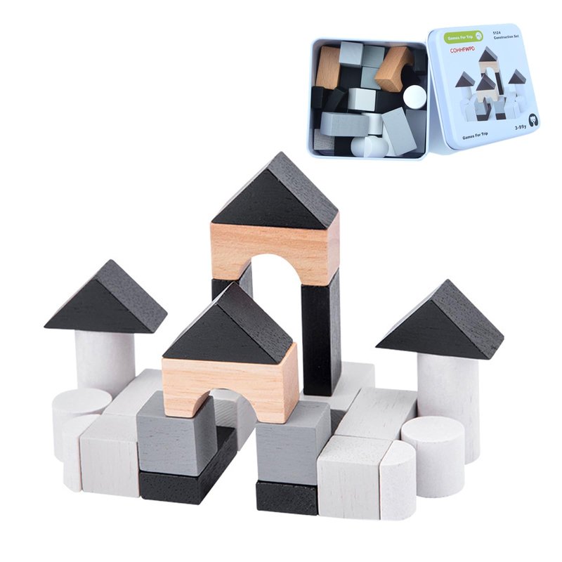 COHHFWPD Wooden Building Blocks, Stacking Blocks Mini Size in Tin Box for Travel, Educational Toy Set for Kids Age 3+