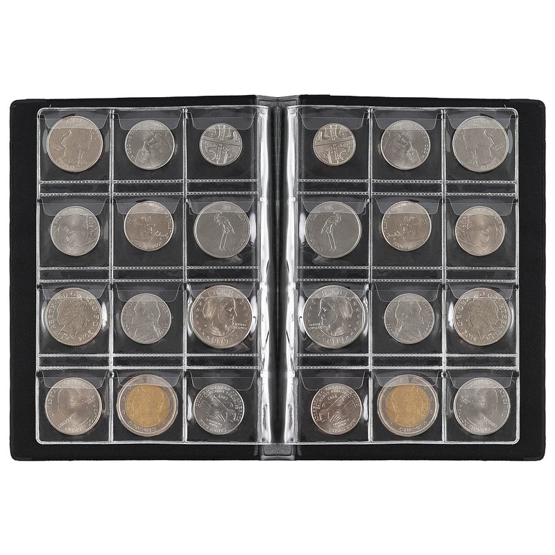 - DISPLAYING - Acid free PVC used as material of inner page, brings good protection. Also has the high transparency to display your collections well. Envelope kind of flaps to prevent coins slip out when displaying