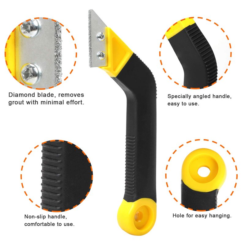 - Angled Design: Tile grout rake tool has an angled head for removing grout from the hard-to-reach places the machine can’t reach, easy to use.