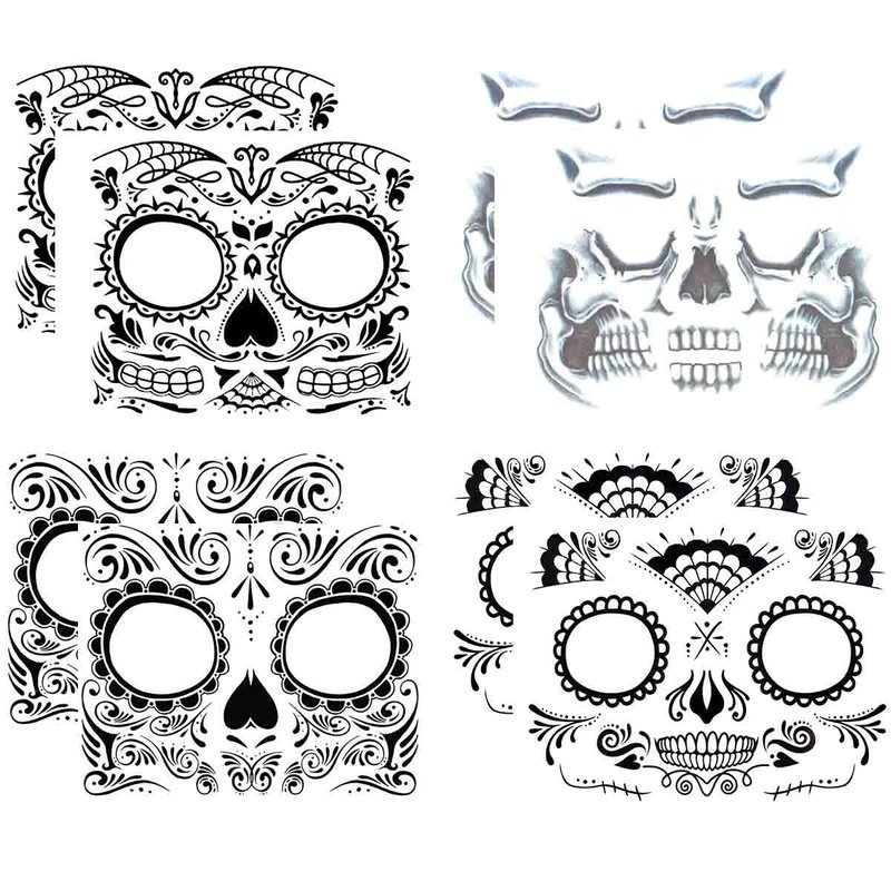 - Face tattoos: You can get 8 pieces temporary face tattoos in 4 different styles, each style for 2 pieces. Beautiful Day of the Dead full face temporary tattoo kit, enjoy them with your friends, everyone shows a different personality