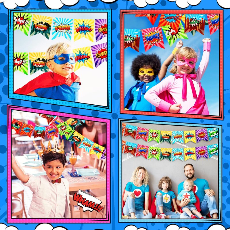- Party Decorations: the hero theme banner is an easy choice for party decoration; Simply hang them up on your wall, door, window or drape them across your room to create a fun and festive sense; The bright, colorful designs and images add excitement to rooms, making them ideal for birthdays, graduations, and other events