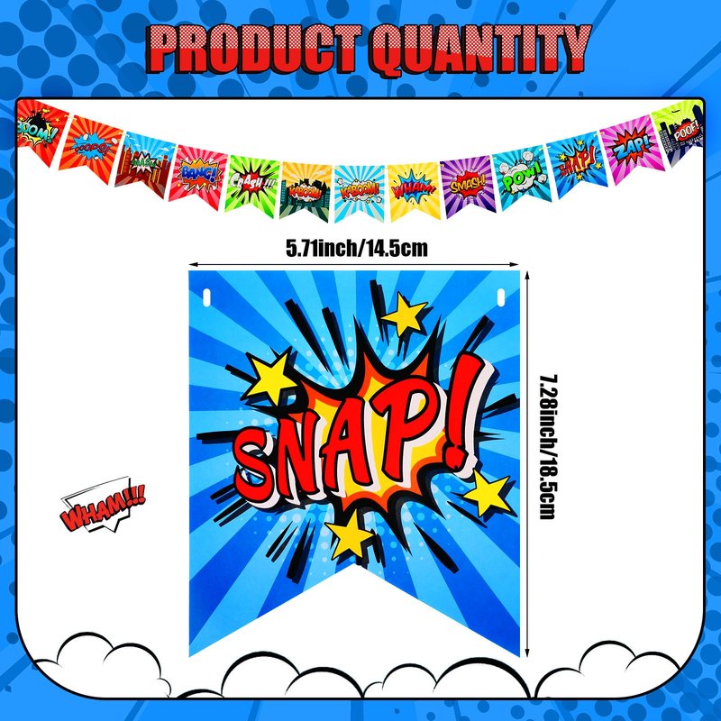 - Generous Package: the hero sign banner set comes with 4 pieces of banners, each consisting of 13 cards with different hero designs, for a total of 52 eye catching cards; This means you can adorn a larger space with multiple banners to create a bold and beautiful decoration to spice up your room decor