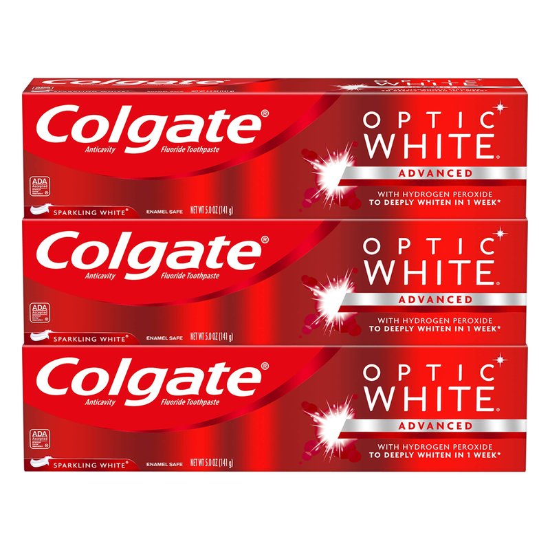 Colgate Optic White Whitening Toothpaste, Sparkling White - 5 ounce (3 Pack)
