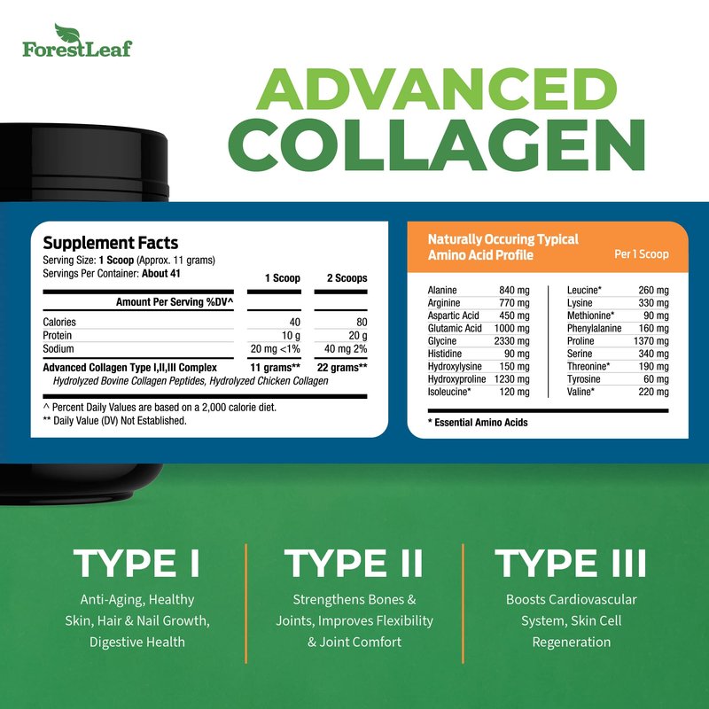 - 100% Customer Satisfaction Guarantee - We take pride in our Non-GMO, GMP compliant, Made in USA lineup of advanced health supplements. There’s always something here for everyone. Not a fan of collagen peptides powder? Don't worry. Unflavored collagen isn't necessarily flavorless, and this additive-free powder may not be suited to everyone's palate. We'll be happy to issue a refund and recommend ForestLeaf Advanced Collagen Capsules with Type 1, 2 and 3 collagen instead.