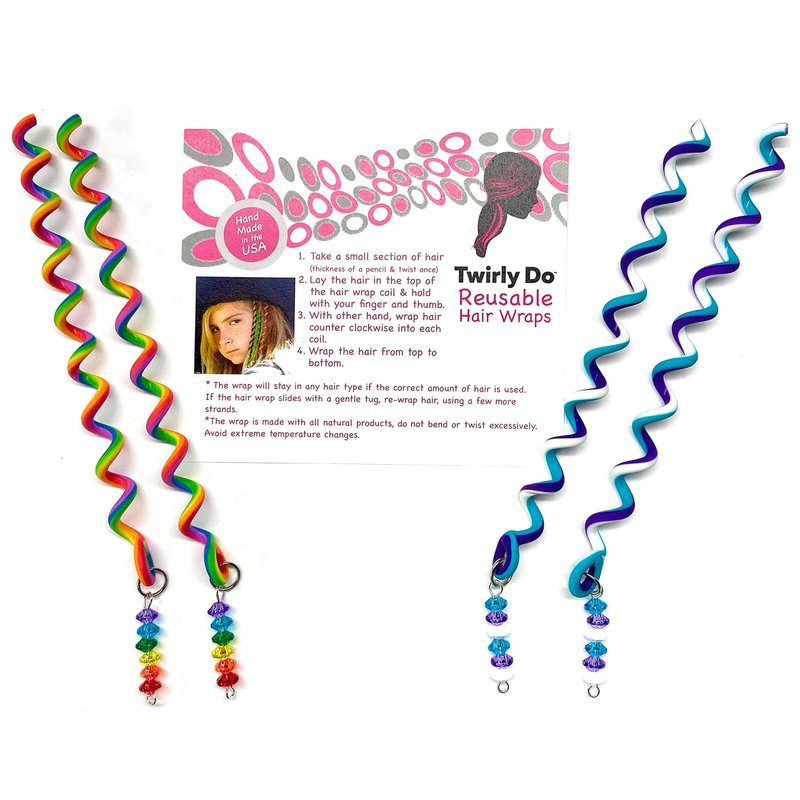 Collect Four (4) 2-Rainbow & 2 W/P/P 5" Twirly Do Reusable Hair Wrap Twist Braid Barrette