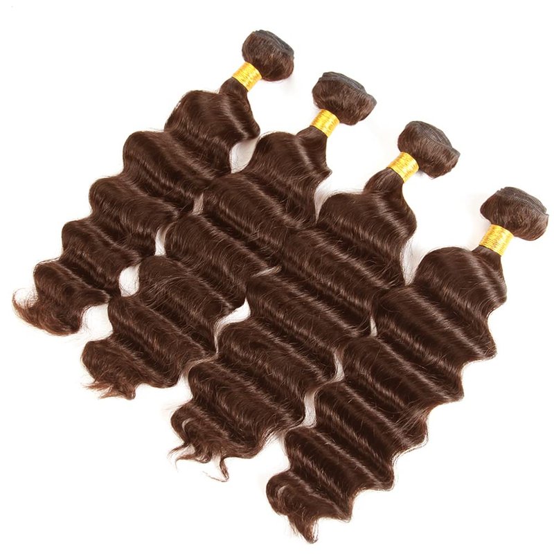 Color #4 Bundles Dark Brown Deep Wave Human Hai...