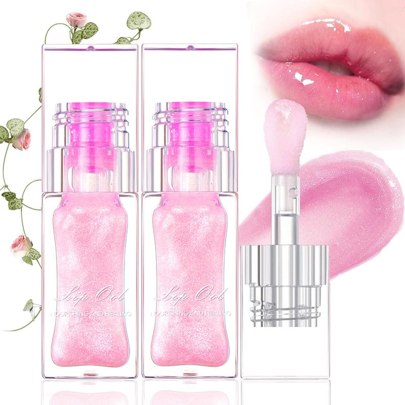 Color Changing Lip Oil, 2Pcs Moisturizing Big Brush Magic Color Changing Lip Gloss Transparent Lip Care, Hydrating Lip Glow Oil, Long Lasting Nourishing Non-sticky Fresh Texture