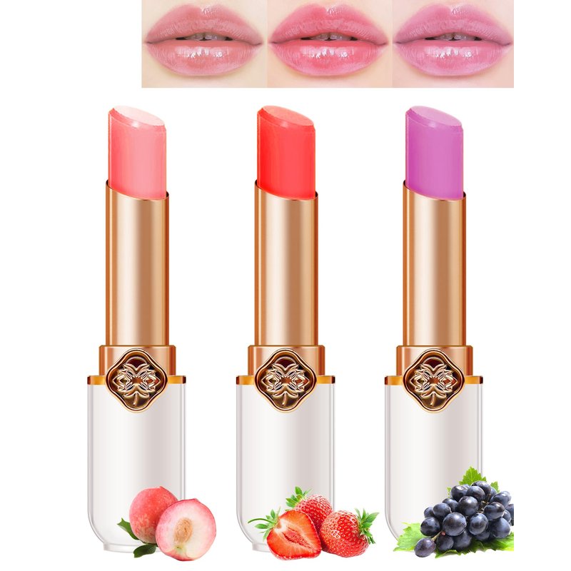 Color Changing Lipstick Queen Set-Strawberry Peach Grape Labiales Magico Lip Balm Lip Stain,Hydrating Lip Tinted Gloss,Long Lasting Waterproof PH Mood Magic Temperature Color Change Lipstick for Women