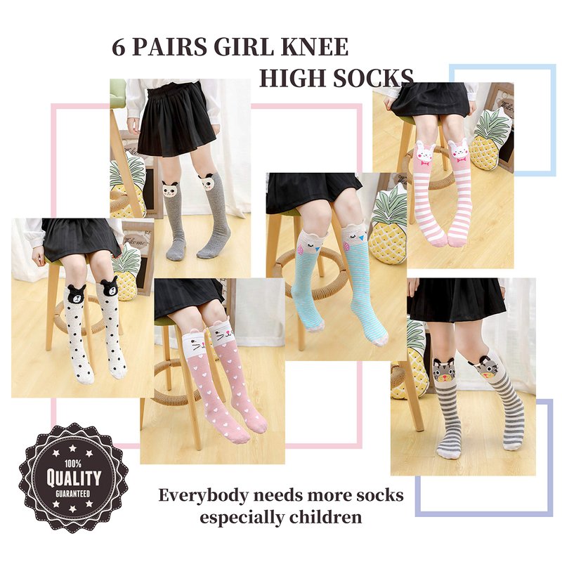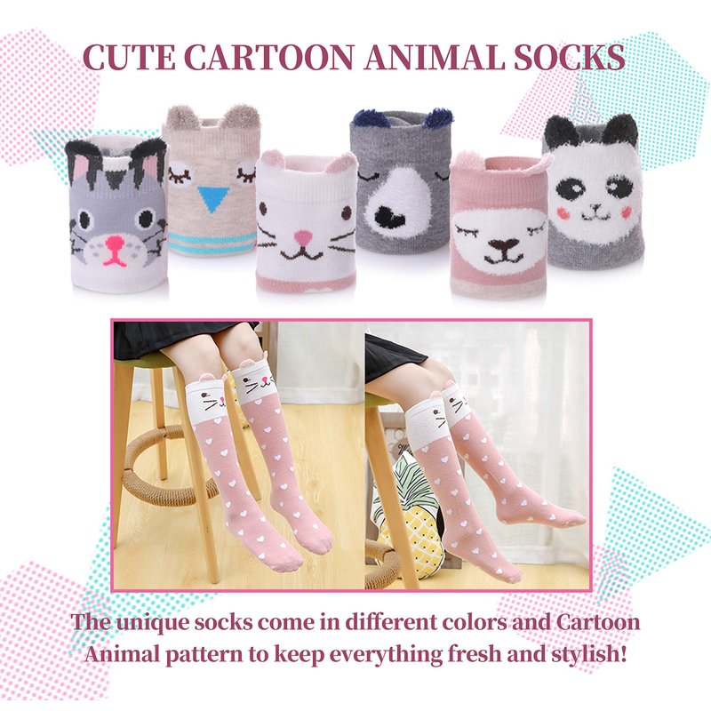 - SIZE - Length : Cartoon colorful socks are approximately 16 Inch, suitable for most girls who are 3-12 years old to wear,There are 6 pairs of socks in one. The socks are whether over calf or knee depends on how long your girl's legs are.
