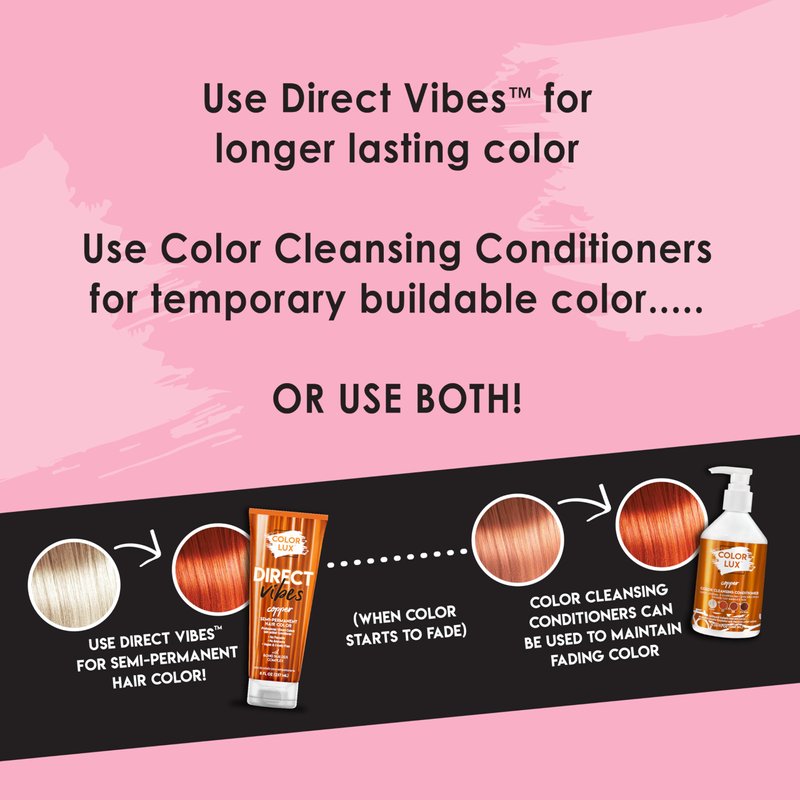 Color Lux Direct Vibes Semi-Permanent Hair Color, Copper, Vibrant & Long-Lasting Shade, Ammonia-Free, Vegan, Sulfate-Free, Paraben-Free, 8 fl oz