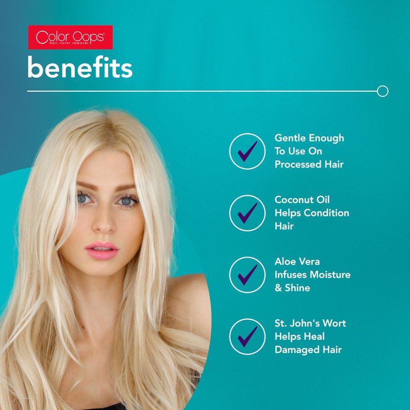 Color Oops Conditioning Bleach is gentle and effective. It is formulated with Aloe Vera and Coconut Oil formula is gentle enough to use on hair that’s been processed or bleached in the past, without further damaging your locks. FEATURES AND BENEFITS: Lifts 2-3 levels, varying results depending on starting level, texture, and porosity For longer than chin length or thicker hair you may need more than 1 box. Multiple applications may be needed to reach the desired level Always conduct a strand test before applying Color Oops Color Oops Lightening and Conditioning Bleach will get your hair healthy, prepped, and primed for whatever hair color you're dreaming of next. Our unique Aloe Vera and Coconut Oil formula is gentle enough to use on hair that’s been processed or bleached in the past, without further damaging your locks.