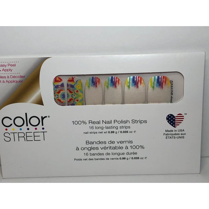 A Far out rainbow motif make this splish splash a hit! Each set includes 16 double-ended nail strips with a shimmer finish. Easy peel and apply with no dry time. Just apply and go! 100% Real Nail Polish Strips made in the U.S.A.