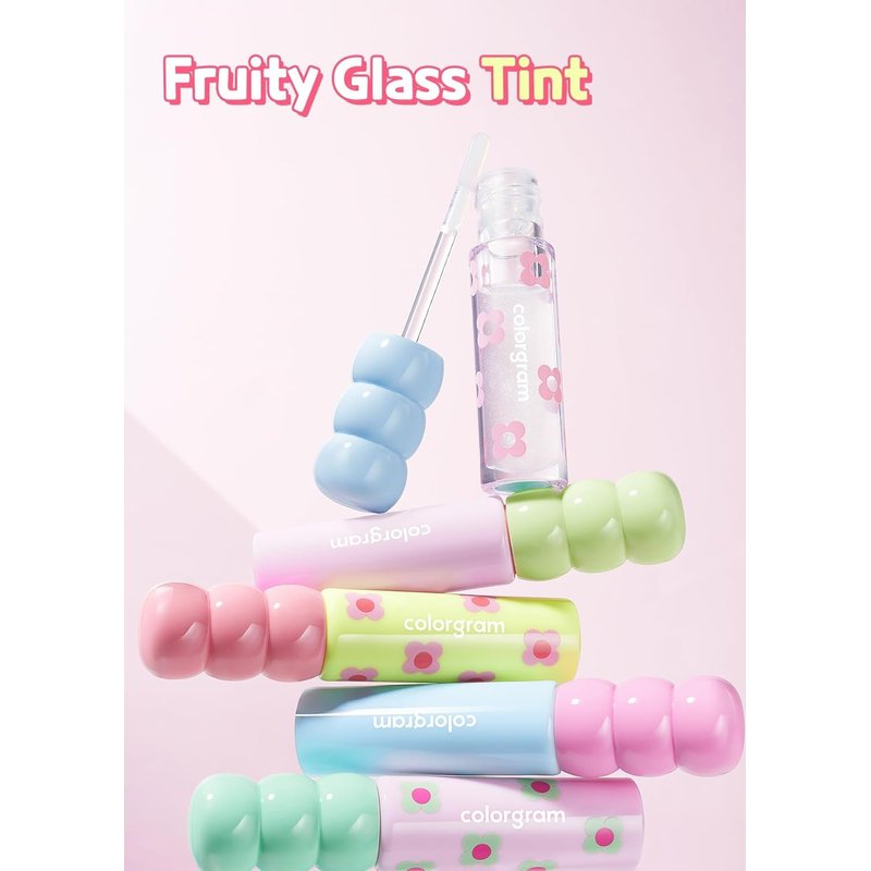 COLORGRAM Fruity Glass Tint Pearl Gloss | Long Lasting & Waterproof Lip Stain | Glossy Transparent Dewy Lip Gloss with subtle Pink Glitter, Buildable & Blendable for Glowing, Sparkling effect 0.11 Oz.