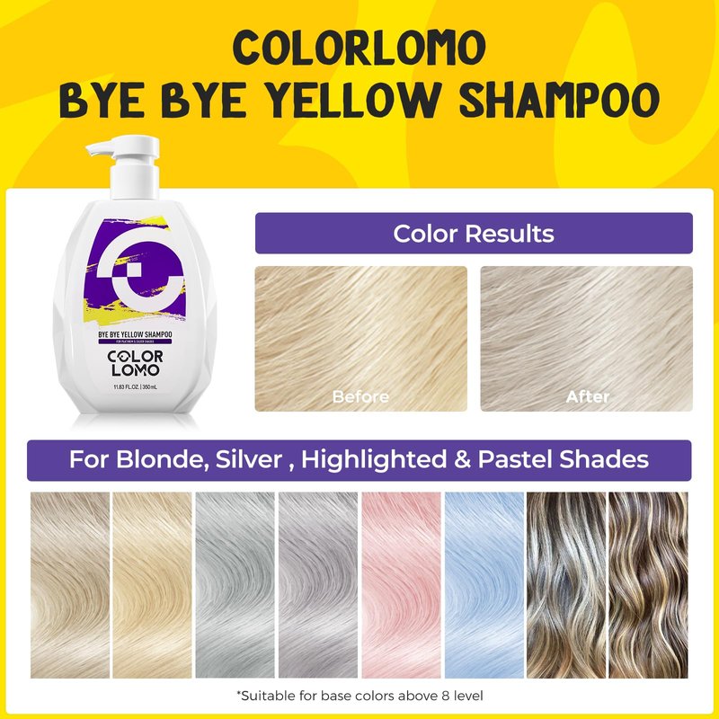 - SAFE & DERMATOLOGIST APPROVED: Prioritize your safety. COLORLOMO Bye Bye Yellow Purple Shampoo is not just about beauty, it's about trust. Our product is approved by dermatologists in the USA, ensuring a safe and reliable choice for your hair care routine.