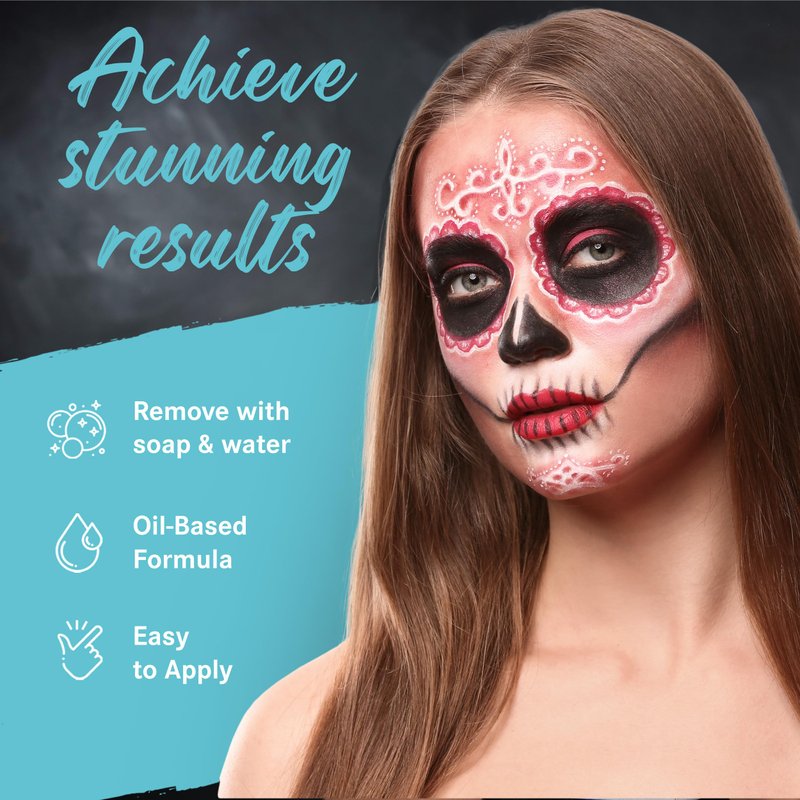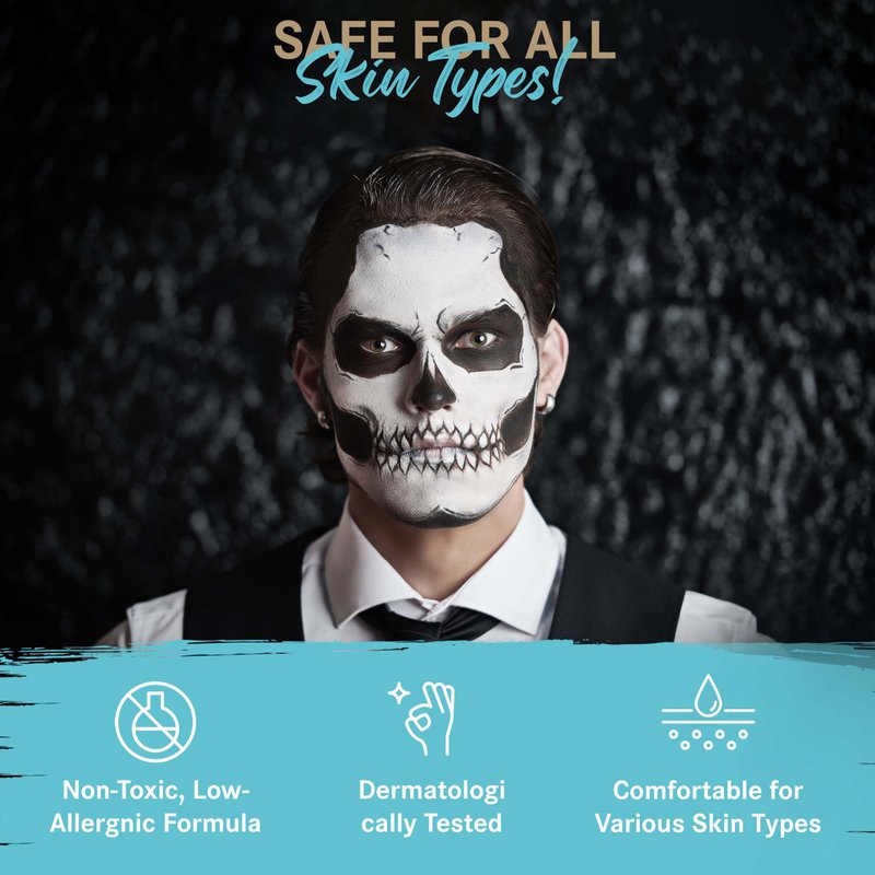 - 【Multi-Eye Black Colors & Multi-Use】: This product is perfect for Halloween makeup, such as gothic, vampire, clown, mime, zombie, skeleton face, spider web, war paint, cat face, and other themed makeup. It is also suitable for different occasions such as themed parties, role-playing, drama, stage performance, carnival, birthday celebrations, decorations, sports activities, and music festivals.