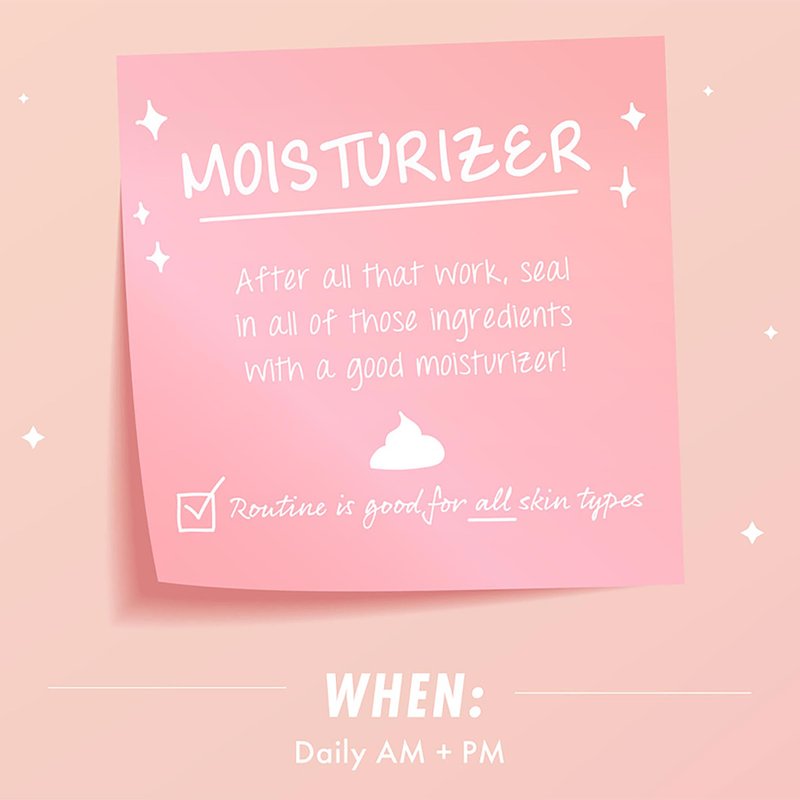 - Application Tips - Apply the daily face moisturizer in the AM or PM, as the last step in your skincare routine to seal in moisture and boost hydration in the skin. Discontinue if irritation occurs.