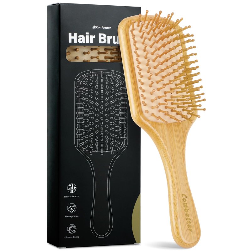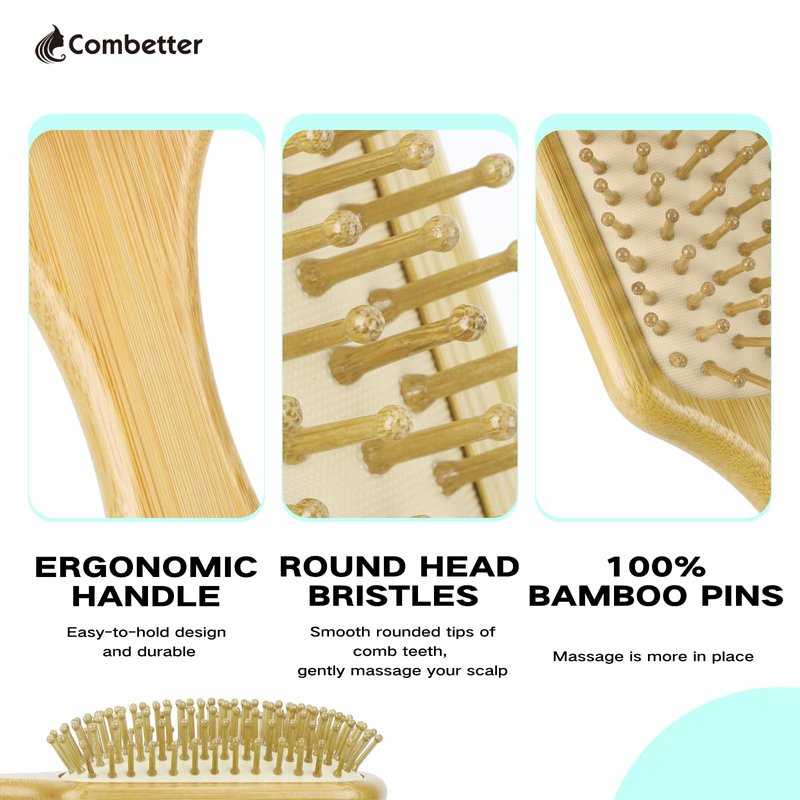 Combetter Hair Brush, Eco Friendly Bamboo Hairbrush-Smooths & Detangling for All Hair Types, Natural Wood Bristle Massage Comb for Women Men & Kids