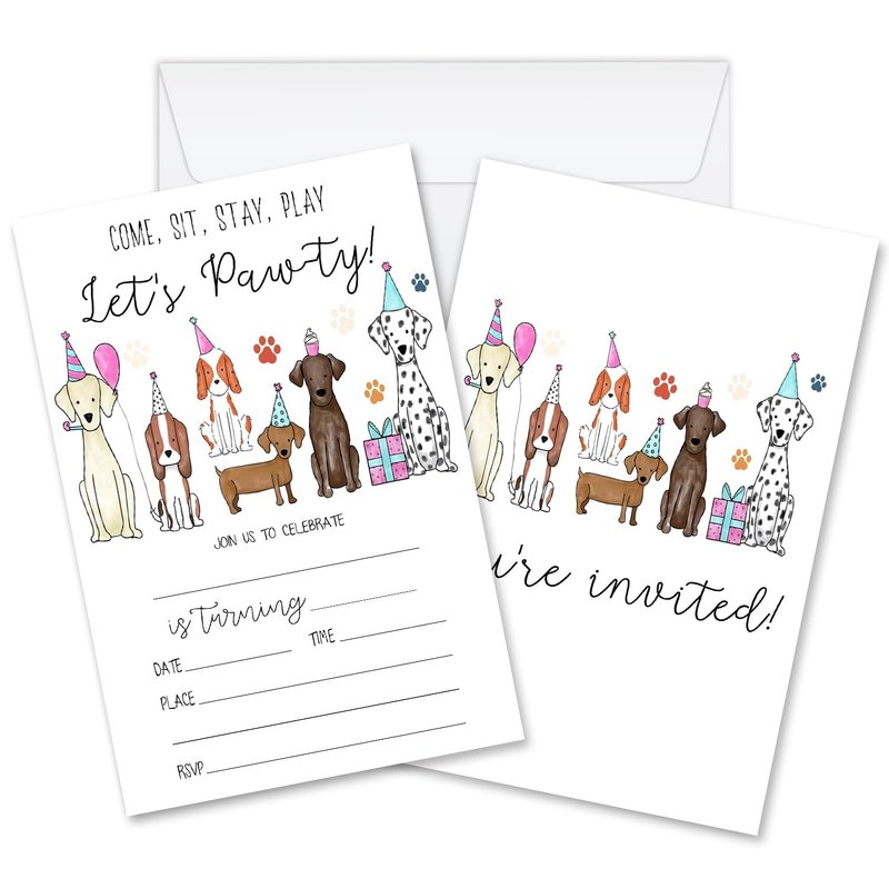 Come Sit Stay Play - Puppy Dog Theme Birthday Invite for Girls Boys Teen Friends, Cute Pet Birthday Party Invitations Card, 20 Invitations With Envelopes, Birthday Party Supplies & Decorations -004