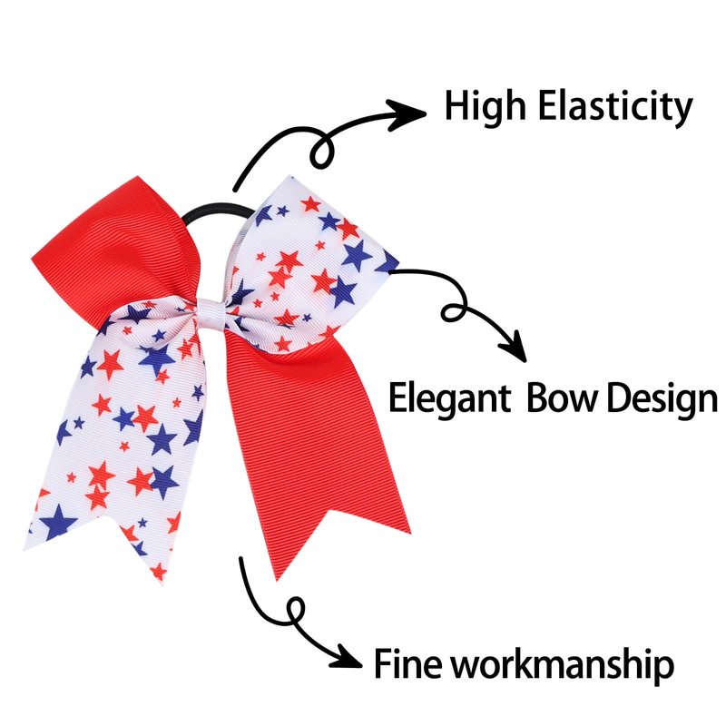 - Perfect 4th of July Hair Accessories: Matched with high elastic hair hoops, patriotic bow ties are stretchable to fix your hair and hold it well without slipping, would not hurt your scalp, really fashionable patriotic hair accessories.